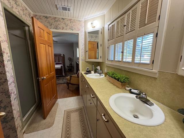 • Primary bedroom: tiled walk-in shower, double closets.